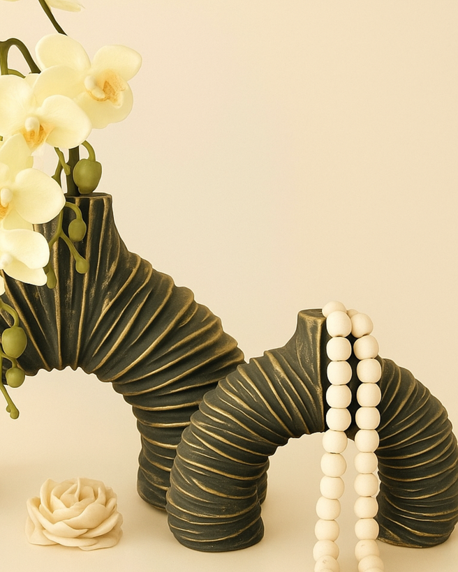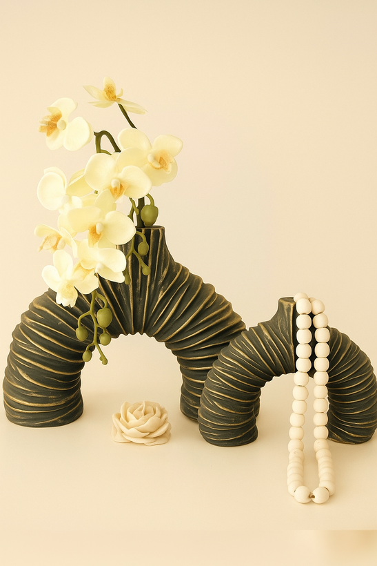 گلدان دوتایی نیمدونات چروک؛ انتخابی خاص برای دکوراسیون مدرن