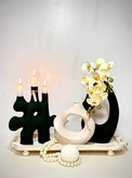 رنگ مشکی مات در کنار کرم روشن، کنتراستی ظریف و لوکس ساخته است؛ درحالیکه گل ارکیده مصنوعی جلوهای طبیعی و لطیف به فضا میدهد.
