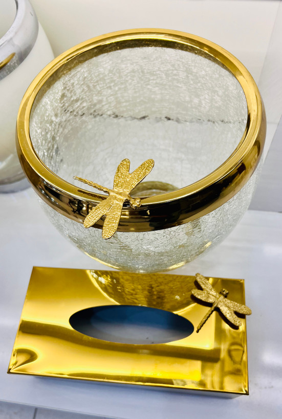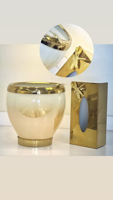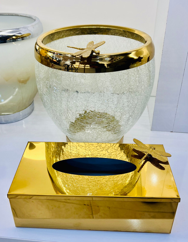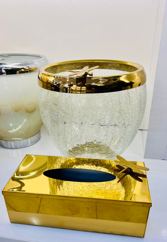 سطل و جا دستمالی لوکس با طرح سنجاقک، یه جفت خاص و شیک برای دکوراسیون خونت هستن که هر نگاهیو به خودشون جذب میکنن. 🦋✨