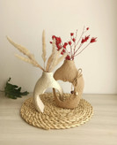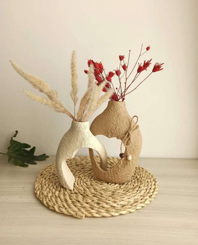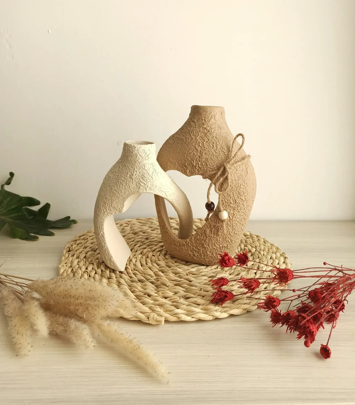 آنچه این گلدانها را از دیگر مدلهای بازار متمایز میکند، بافت برجسته و فرم آزاد آنهاست که نهتنها حس هنری دارد بلکه نوعی آرامش بصری ایجاد میکند. استفاده از نخ کنفی و مهرههای چوبی به آن حس طبیعی و دستساز بودن میدهد که برای طرفداران سبکهای اسکاندیناوی و بوهو بسیار جذاب خواهد بود. تنها نکتهای که باید توجه کنید، این است که این گلدانها برای گلهای طبیعی با آب مناسب نیستند